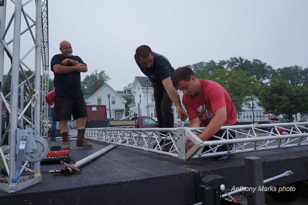 Ringo Tarr and crew are getting the stage ready for the free concert