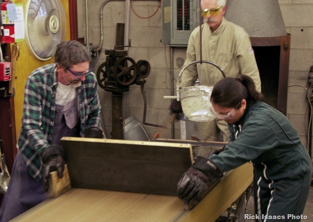Casting Lead for Organ Pipes at Fisk Shop – Terry Joris, David Pike and Nami Hamada, hard at work!