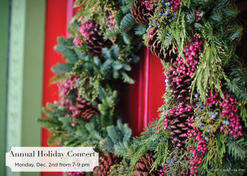 Join us for our 7th Annual Holiday Concert at Willowdale Estate! Monday, December 2nd from 7-9pm with light refreshments to follow. Our concert will feature traditional holiday music with selections from Handel’s Messiah.