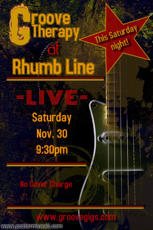 Music starts @ Six O’Clock for the Dan King’s early show then @ 9:30 Groove Therapy kicks it up a notch @ The Rhumb Line