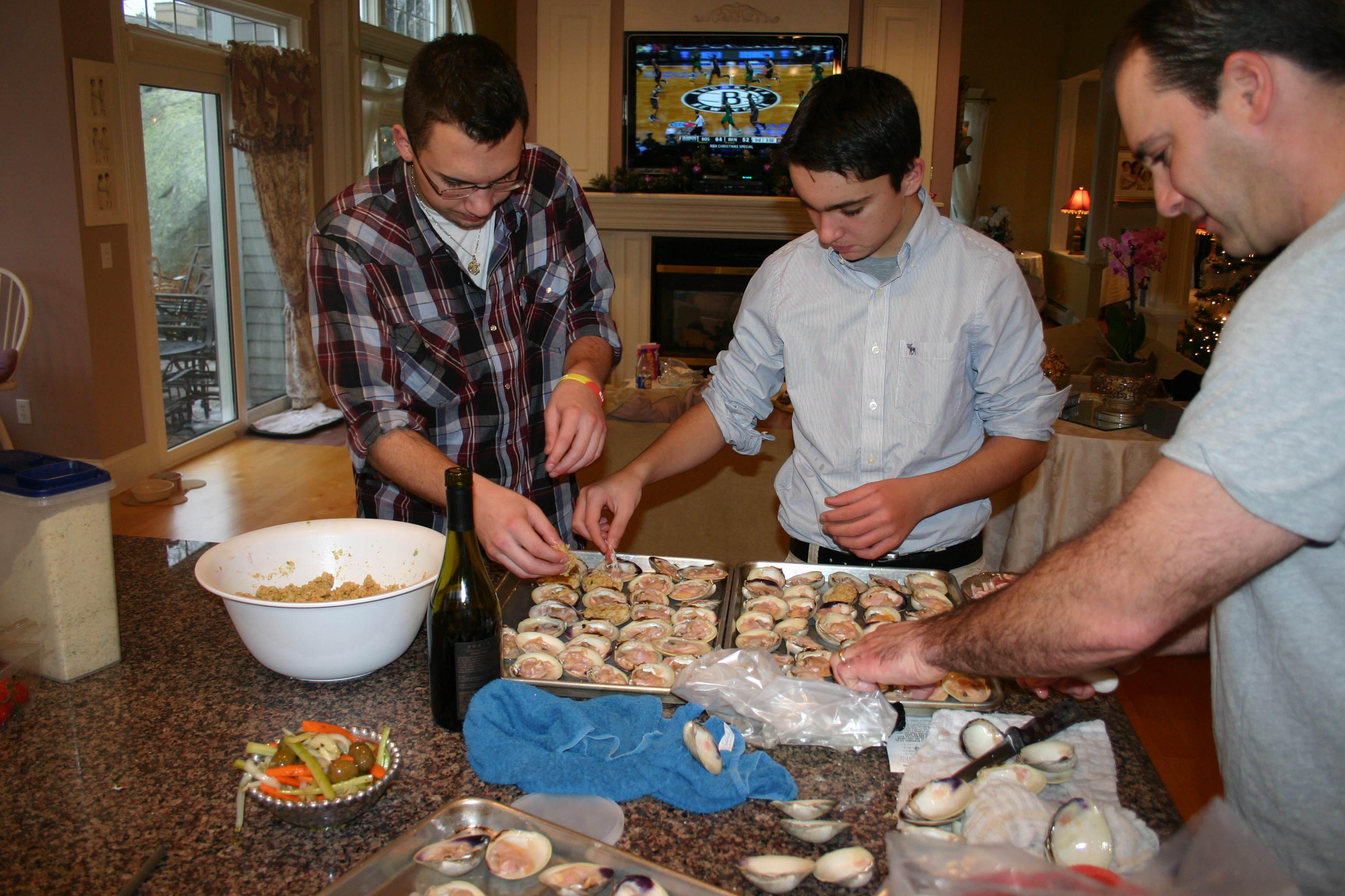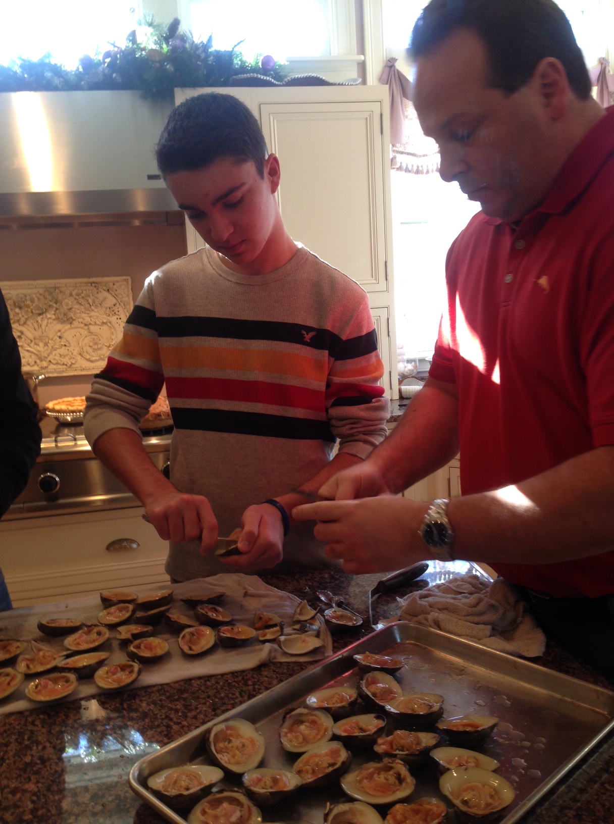 For years Stuffed Top Neck Clams have been the highlight of our holiday feast. It’s become tradition for the men in the family to gather around my kitchen island to prepare the clams for stuffing. A daunting task and skill taught to the younger generations year after year to keep the tradition alive. The only compliant you may hear from the men is that their not cooking fast enough!