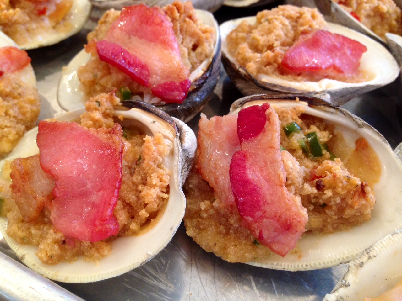 6 Top each stuffed clam with bacon