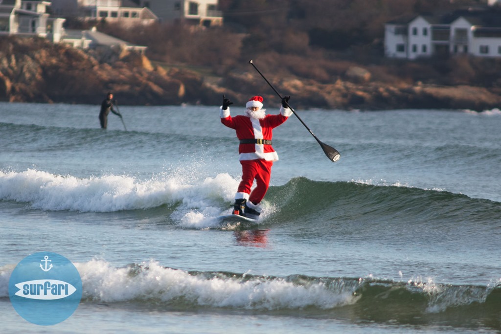Here’s a photo I took of Santa stand up paddle surfing at Good Harbor Beach this morning. When asked why he was surfing here and not somewhere tropical like Hawaii he said that the 47 degree water felt like the tropics compared to the North Pole and that it was a shorter trip!