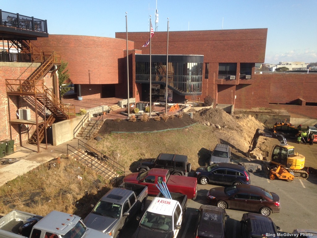 I spoke with Police Chief Leonard Campanello today about the Rogers St. construction site where the stairs once were. The official plan is for 5 to 10 new parking spaces and some pleasant landscaping to be completed by Spring 2014. The work is being done by Gloucester Dept. of Public Works under the the direction of Mike Hale.