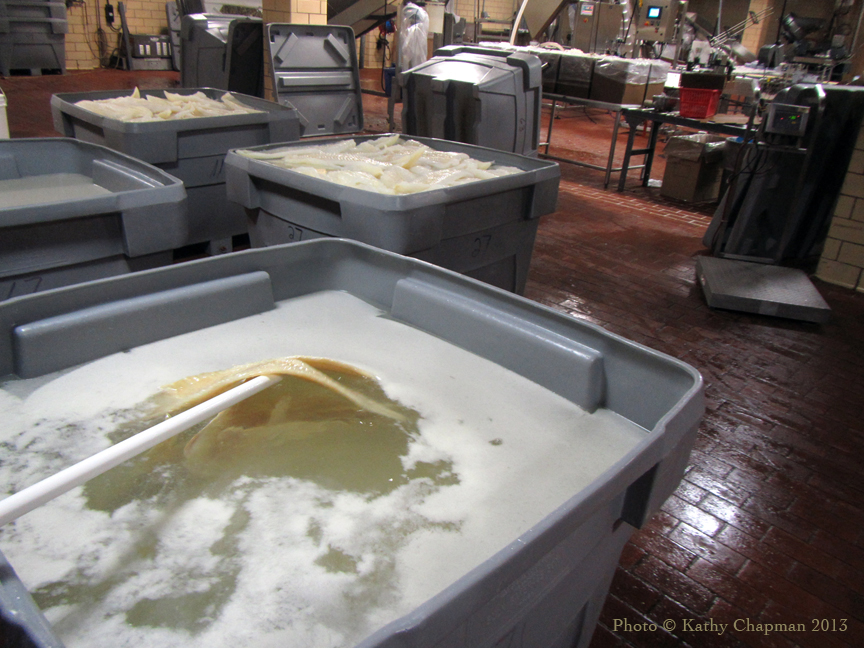 While Kathy visited the Twin Cities over the holidays she stopped by Minneapolis’ Olsen Fish Company, one of the nation’s only lutefisk suppliers. They process and sell close to half a million pounds of Lutefisk each year. http://www.olsenfish.com/
