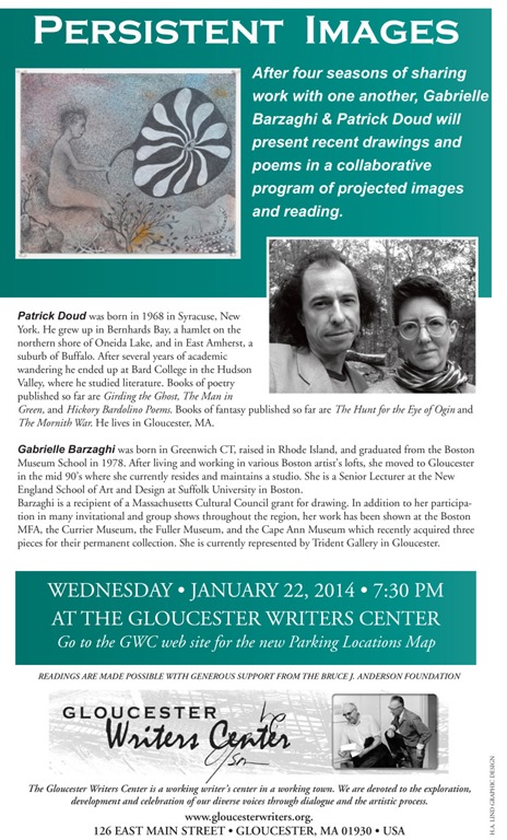 on Wednesday, January 22 from 7:30 to 9pm at the Gloucester Writers Center.