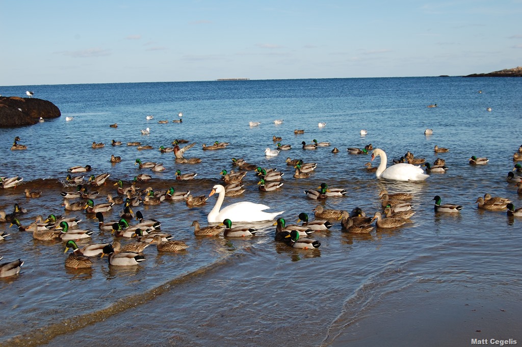 Saw these swans hangin out with their buddies on Front Beach in Rockport today.