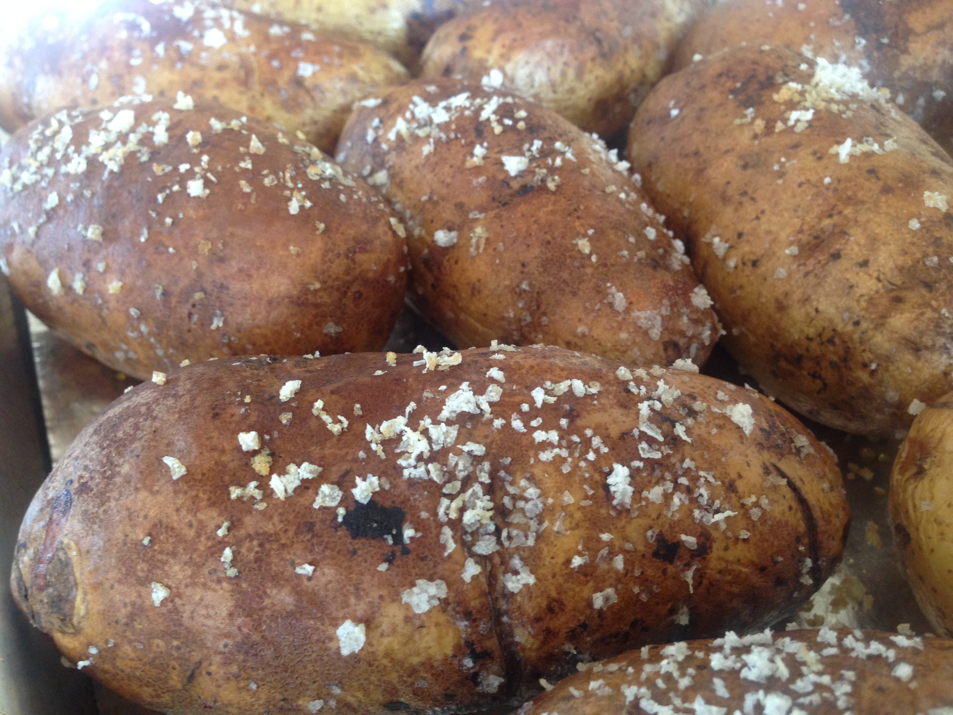 1 wash and dry Russet Potatoes; place small dab Crisco onto each potato; using hands, gently massage Crisco over skin of each potato; place on cookie sheet