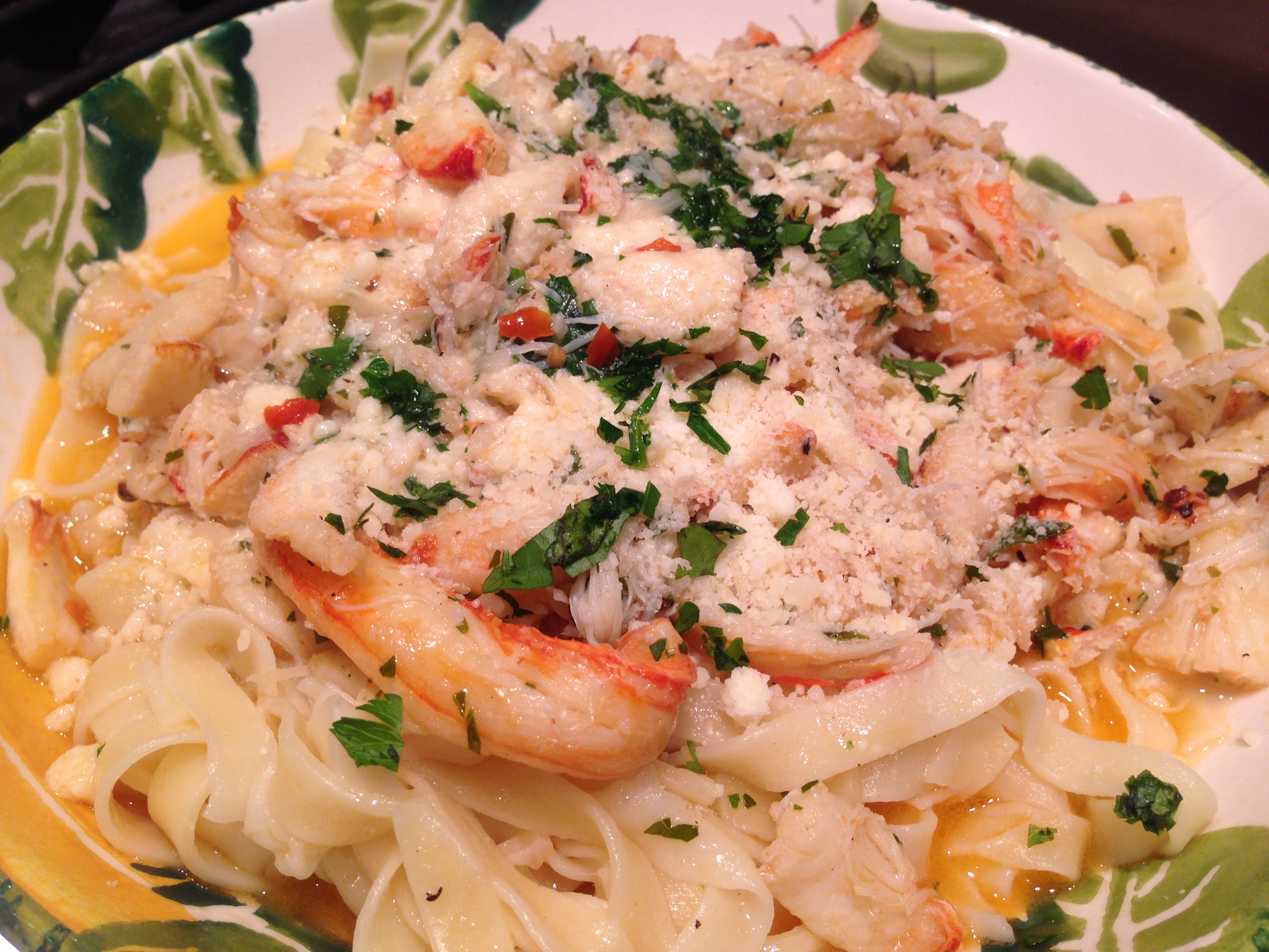Tuesday evening Eric Lorden owner of Passports Restaurant and Alicia Cox owner of Mamie’s Kitchen took over my kitchen for a few hours, during the St. Joseph Trolley celebration at my home! Eric and Alicia teamed up and whipped up a few crab meat dishes for our guest using 5 lb. of fresh crab meat Cousin Joey Marcantonio dropped off earlier that afternoon while I was on the St. Joseph Trolley ride with the Godmother of Gloucester “Sefatia. Alicia prepared dozens of delicious crab cakes, while Eric prepared a yummy crab meat scampi. Thank you Eric, Alicia and cousin Joey that was an awesome treat!