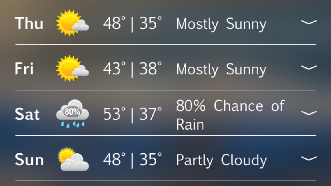 Today Sunny with a few clouds 45-50° degrees .. Cooler along the shore with a light north east wind 5-10 mph becoming SE 5-10mph later in the afternoon .. Wednesday night partly cloudy not as cold lows 35-40° degrees with a light and variable wind…