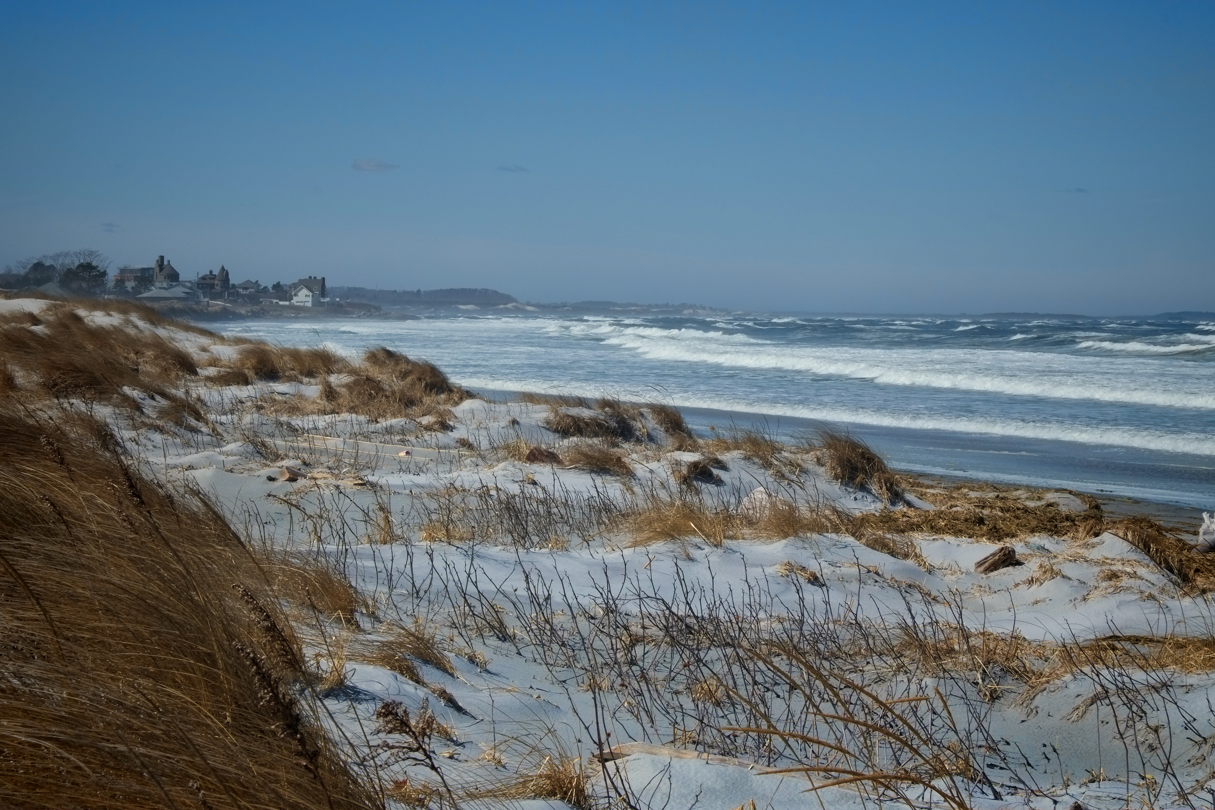 Looking westward along Coffin’s Beach to the houses on Two Penny Loaf, across the Essex River to Cranes Beach and beyond to Plum Island. From this vantage, on a clear day, we can also see the Isle of Shoals on the New Hampshire – Maine border. It still amazes me that just 15 minutes away by car is Niles Beach from which we can view the Boston skyline, so that from two locations in the City of Gloucester we can enjoy the view of more than 50 miles of beautiful New England shoreline.