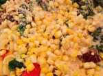 8 strain pasta in large colander; transfer to large serving bowl; top with reserved pepper mixture, Swiss chard, corn, grilled chicken and Creamy Chipotle Alfredo Sauce; mix well; tope with sprinkling fresh cilantro; serve immediately