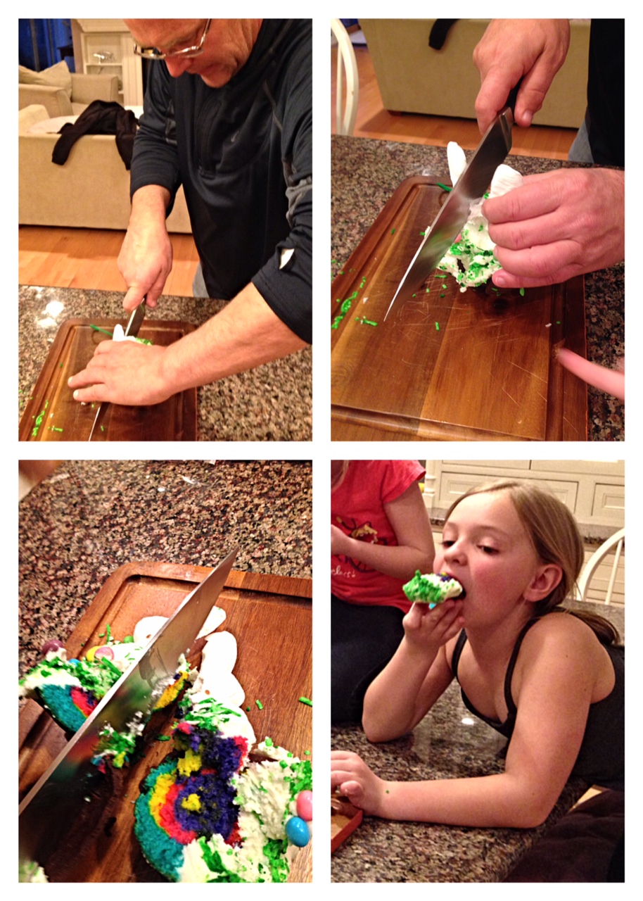 Don’t you just love when inspiration strikes! Last week while shopping at Scalafini Bakery I noticed one of my favorite childhood Easter treats on the shelf for sale. The creative wheels in my head started turning and latter that afternoon I surprised my nieces and their friend Karlee Lorden with this Marshmallow Peeps Easter Egg Surprise! …And for the record it took 10 guesses before the girls guessed the correct filling inside the chocolate egg! They had a great time taking turns guessing during dinner time!