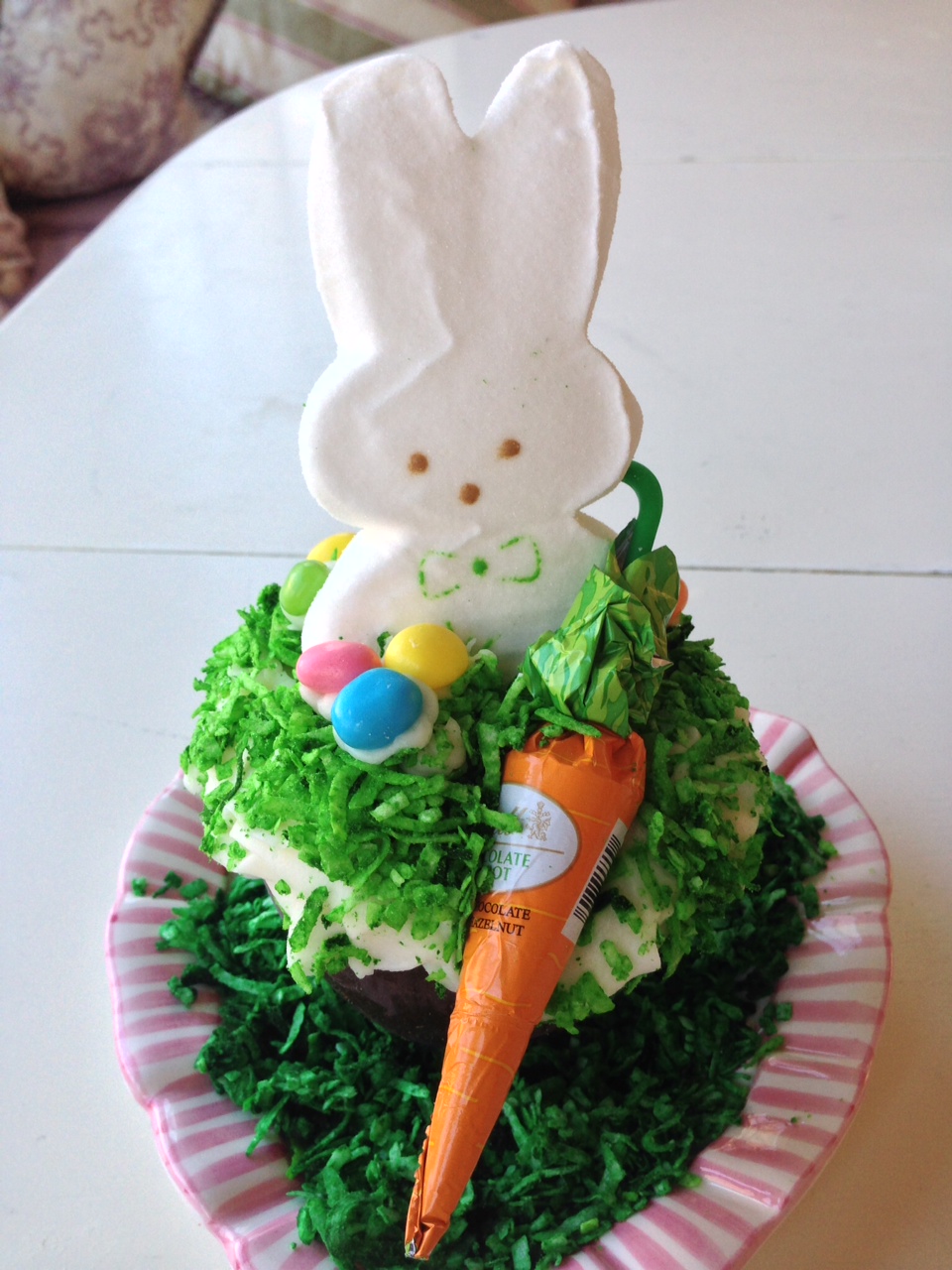 10 attach Lindt chocolate carrot candy to each Peeps Bunny; serve