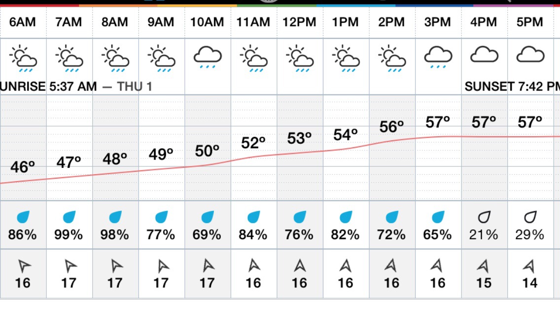 Forecast : Blah Blah Blah ! Sums up Thursday morning rain / Storms gusty winds from NE , then possibly some clearing by noontime but I wouldn’t count on it ! More showers / storms for the afternoon if we see any sunshine which would destabilize the atmosphere producing clouds and eventually showers / storms … Temps determined by amount of breaks we see , if we see a lot of sunny breaks temps could SOAR!! Into the lower 70°s away from the coast on a South west wind gusting to 30mph.. At the shore temps could possibly reach the 60’s if we break into the warm sector and front passes us to the north ! Again don’t bet on it … Thursday Night temps drop into the 40’s with early evening shower / thunderstorm .. Winds from the west south west 10-20mph …