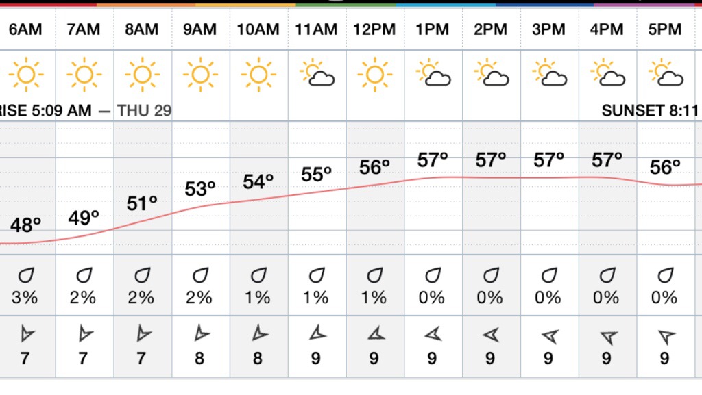 Thursday Forecast …Sun & Clouds mild but not warm mid to upper 50’s .. East to North East Winds around 10-15 mph … Thursday Night mostly clear temps dropping into the 40’s with a light south southeast wind 5-10mph..