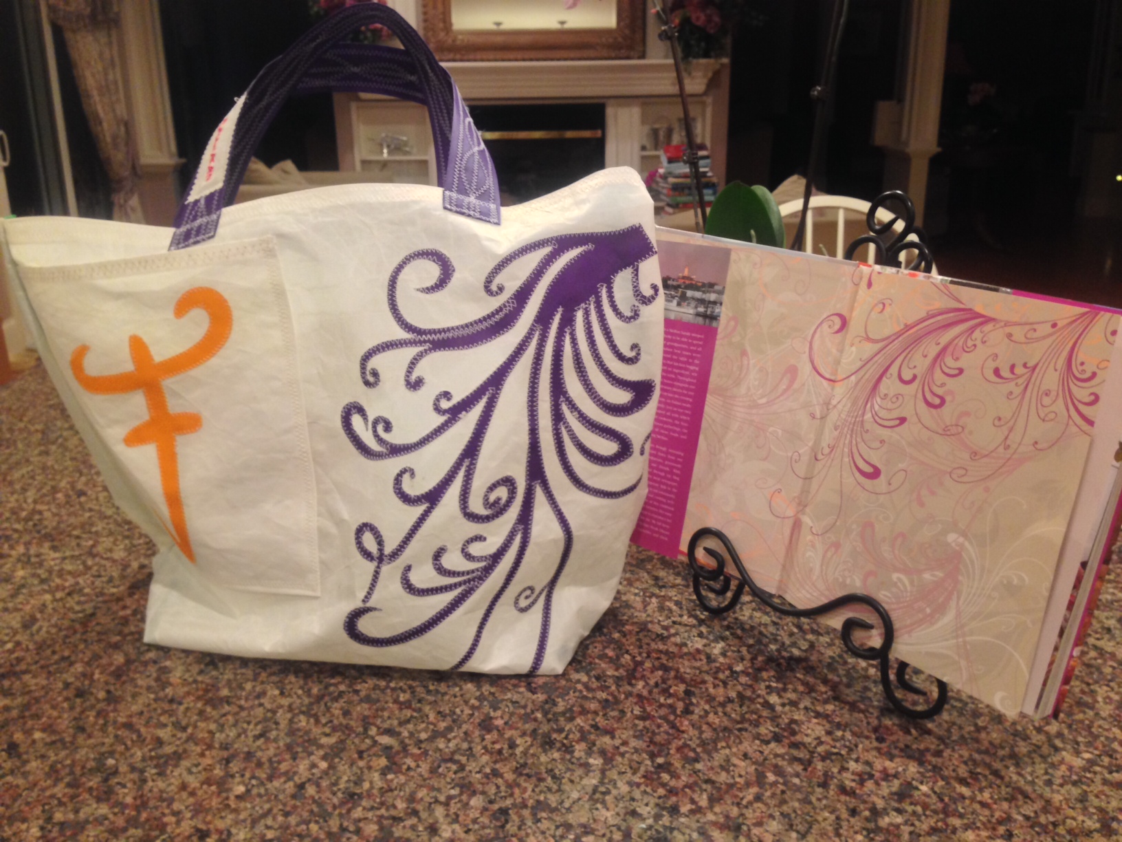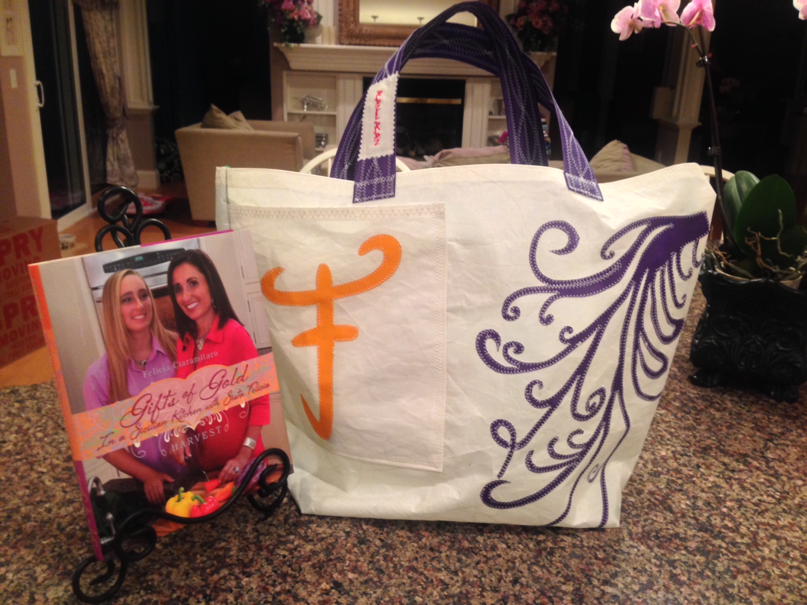 Frieda owner of Again & Again, used art work straight form the pages of my Cookbook “Gifts Of Gold In a Sicilian Kitchen With Sista Felicia, Harvest”, to custom designed a “Sista Felicia” tote bag made from recycled sail cloth.