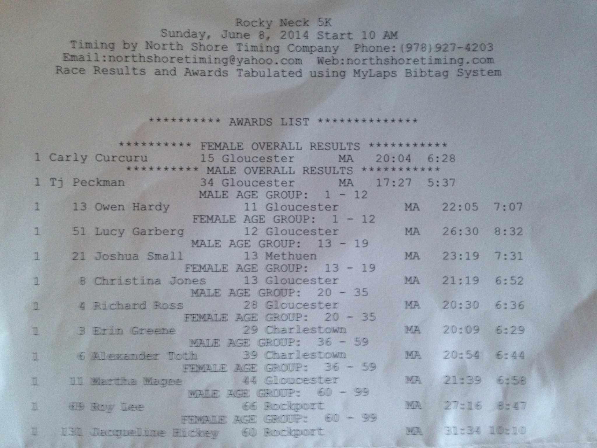 LIVE RESULTS: Rocky Neck 5K Award Winners!!