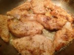 6 melt/heat butter and La Spagnola oil in large fry pan over high heat setting; add garlic and lemon rind; saute 30 seconds