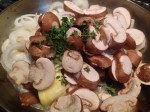 1 melt butter in medium sauce pan; add sliced onion, mushroom, and thyme; saute 3-5 minutes over high heat until onions are soft and translucent