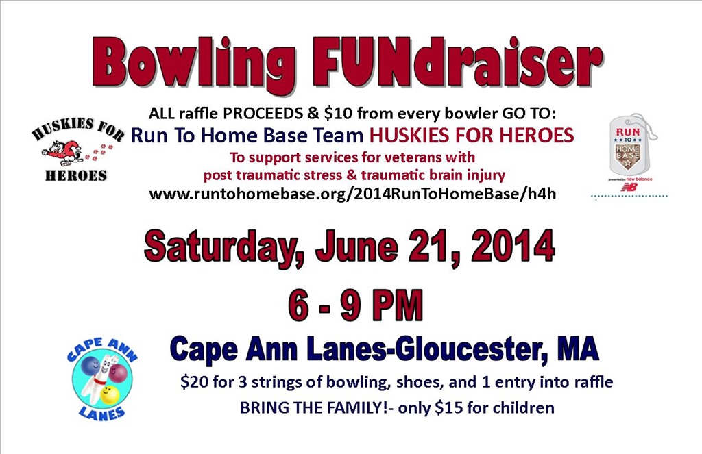 Come join the HUSKIES FOR HEROES Run to Home Base team in raising money to support services for local Veterans with Post Traumatic Stress and traumatic brain injury-All while having fun and bowling with friends and family!!