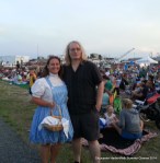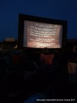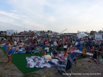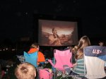 Seagulls, boats, and harbor…Oh My! Here’s more pictures of what you missed at last week’s Wizard of Oz, the first free movie for the HarborWalk Summer Cinema series. All the movies are family friendly classics and Oz was a fitting choice to start the series off! Big shout out to Doyon’s who sponsored Wizard of Oz. The massive screen and classic movie line up are all thanks to Rob Newton’s Cape Ann Community Cinema in partnership with the City of Gloucester’s community development department and the HarborWalk. Senior Planner Matt Coogan is orchestrating this series. Ramping up the scale of community viewing, Cape Ann Community Cinema’s owner, Rob Newton, geared up during the set-up. As you might expect in Gloucester, there was a big community turn out for art! As dusk approached, I stopped counting at 400 people streaming in. Kids played “soccer” with beach balls provided byNORTH SHORE 104.9 radio who emceed the pre-movie time. Radio host Aurelia Nelson and NORTH SHORE 104.9 crew were amiable. You can catch her show Curtain up! with Aurelia Nelson on Sunday mornings at 9AM. Carol Thistle, Senior Project Manager for City of Gloucester coordinated with the radio station. Vendors you may know from Cape Ann Farmer’s Market and/or festival and Downtown Block Party regulars set up nearby and included: Markouk’s specialty bread and sandwiches (grilled right there on their traditional Lebanese saj), Kettle corn, and fried dough. Pop Gallery added to the festive vibe—see some of their recent garb on Joey in this GMG post.