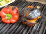 5 arrange peppers on grill, turning when skin blackens and blusters