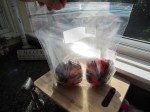 7 remove peppers from bag; peel blustering skin, and remove seeds