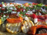 A few summers ago, I came across a mouth watering photo of a Grilled Veggie Pesto Pizza on the very popular Blog site “The Pioneer Women” belonging to Ree Drummond. When I read the list of ingredients included in Ree’s Grilled Veggie Pesto Pizza; pesto, grilled zucchini, goat cheese, roasted peppers… I immediately got hungry, and knew I had to make it for a friends end of the summer BBQ. Using zucchini, summer squash, and basil, from my farm share at the Applenton Farm I whipped up my own “Basil Pesto” recipe and followed Ree’s guide for the pizza. After sampling the first bite I fell in love. The combination of flavors is absolutely amazing! The past few summers I have made it numerous times and it’s always a big hit. I give “The Pioneere Women,” Ree Drummond’s Grilled Veggie Pesto Pizza a double thumbs up! Trust me, give this one a try…you won’t be disappointed. It’s a great way to use fresh zucchini and basil growing this time of year!