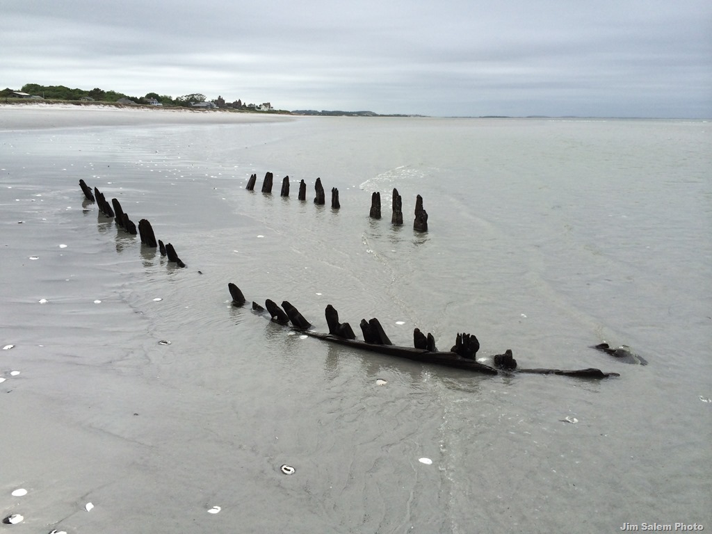 We haven’t spoken in a while. Your always a good source of information and as I promised in the past, I just wanted to let you know that our program has started investigating the unidentified shipwreck which recently became exposed on Coffins Beach. We were out there yesterday and spoke with a few local residents. They had never seen the wreck before and several lived there for about 40 years. Our files list a few wrecks in the area, but those vessels were much larger than this shipwreck. The exposed portion of the wreck is about 34 feet long, though probing suggests it is about 40 feet long; width is roughly 14 feet max. Metal fittings were not evident. If you have heard of anything about the wreck. I’d like to hear from you. otherwise, I’ll keep you posted on what we find out.