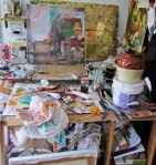 “my studio is in my kitchen. the oil paint gets messy. i have nearby