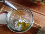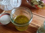 3 combine olive oil, water, sugar, salt, and pepper in mason jar; fix lid and ring tightly on jar; shake vigorously until sugar is dissolved and dressing comes together
