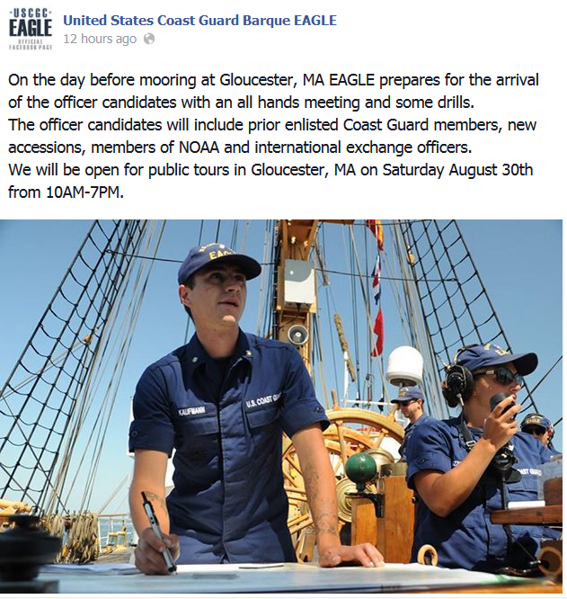 Photos of the USCGC Eagle arriving today in Gloucester Harbor ~ It was tremendously beautiful to see the Eagle moving through the Harbor. I am looking forward to seeing this majestic cutter under full sail!