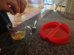 *Note~ Our fist omelet was prepared following the manufactures instructions, of whisking ingredients together before pouring into the silicone mold, but that process resulted in 3 things to clean measuring cup, whisking tool, and silicon mold. I shorten the cleaning item list to 2 by add and whisking all ingredients together in the silicone mold itself just prior to cooking.