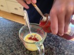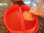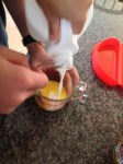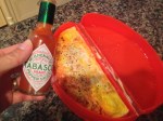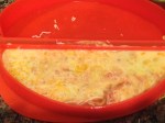 *Note~ Our fist omelet was prepared following the manufactures instructions, of whisking ingredients together before pouring into the silicone mold, but that process resulted in 3 things to clean measuring cup, whisking tool, and silicon mold. I shorten the cleaning item list to 2 by add and whisking all ingredients together in the silicone mold itself just prior to cooking.