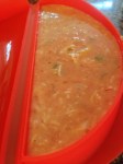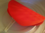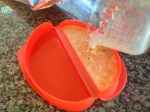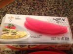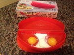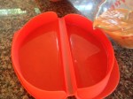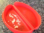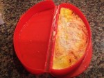 I remembered watching scrabbled eggs cook in a glass Pyrex liquid measuring cup quickly, effortlessly, and with little mess within minute’s right in the aisle of the appliance store. The very next morning, happened to be a Saturday, and I decided to replicate that same microwave egg demonstration to son BJ. He thought it was a genius approach of cooking fast with little mess to clean, and was happy with the results. For the next several days their “to go” breakfast wraps and sandwiches were prepared in this fashion, until I scored this nifty silicone omelet gadget made by Le’Kue’ on clearance for $8.00 in Marshalls the other day. This Silicone Omelet mold by Le’Kue’ has definitely made my morning job of fixing a hot “To Go” breakfast for my boys a lot faster and easier. I definitely give this kitchen gadget a two thumbs up for the ease of preparing eggs in an omelet style via the microwave.