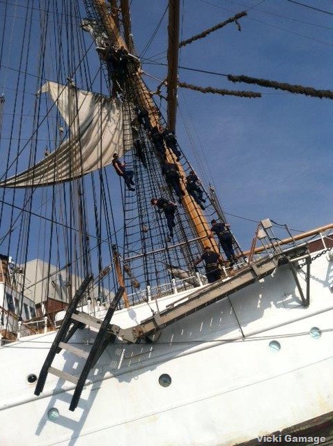 Thought this was a different shot of the Eagle, climbing the rigging before parade of sail.