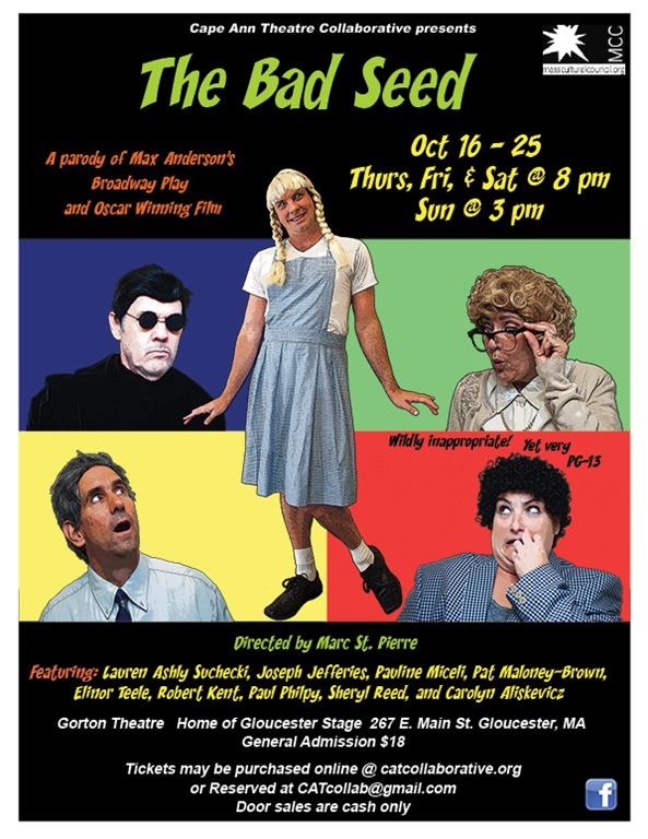 The Bad Seed is presented at the Gloucester Stage Company, 267 E. Main St. Seven shows only, Preview Performance 10/16, opening Friday, 10/17 running through Saturday 10/25.