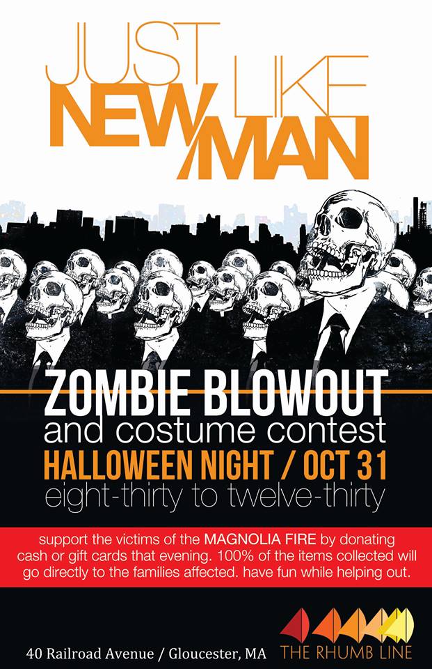 Zombie Blowout and Costume Contest Halloween night @ The Rhumb Line with Just Like Newman ~ Friday at 8:30pm – 12:30am