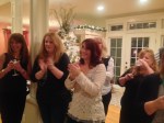 Sunday afternoon, my friends and family joined me for my 5th annual personal Christmas Party. My childhood friend Katrina Lafata Haskell’s husband Jim kick off of our evening with a special wine tasting, which included a bottle of homemade wine produced here in Gloucester, by Friends Neil & Bridgett Mathews, and their Family. Every year we looks forward to learning something new from Jim about his line of wines. This year wine was served in hand painted wine glasses adorned rhinestone “PEACE” symbols made by my mom. The hand painted glasses have become an annual tradition my mom and guests equally enjoy! Mom loves to create them, and our guests enjoy taking them home at the end of the night. I want to thank my husband St. Barry and my mother Pat for insisting I keep tradition and host the party this year, when they heard talks about me not hosting it this year, shortly after my daughter recent surgery. They knew I need a night of fun, and knew this night would raise my spirits….and that it did! Thank you ladies and Merry Christmas!