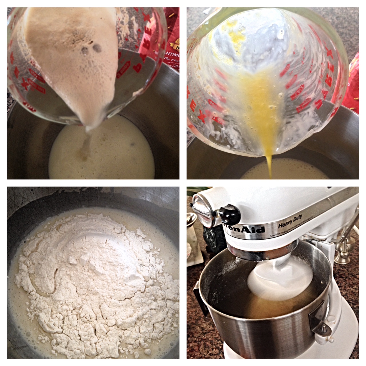 3 transfer warm mixture to bowl of stand mixer fitted with dough hook attachment; add beaten egg and one cup flour; mix on low speed one minute