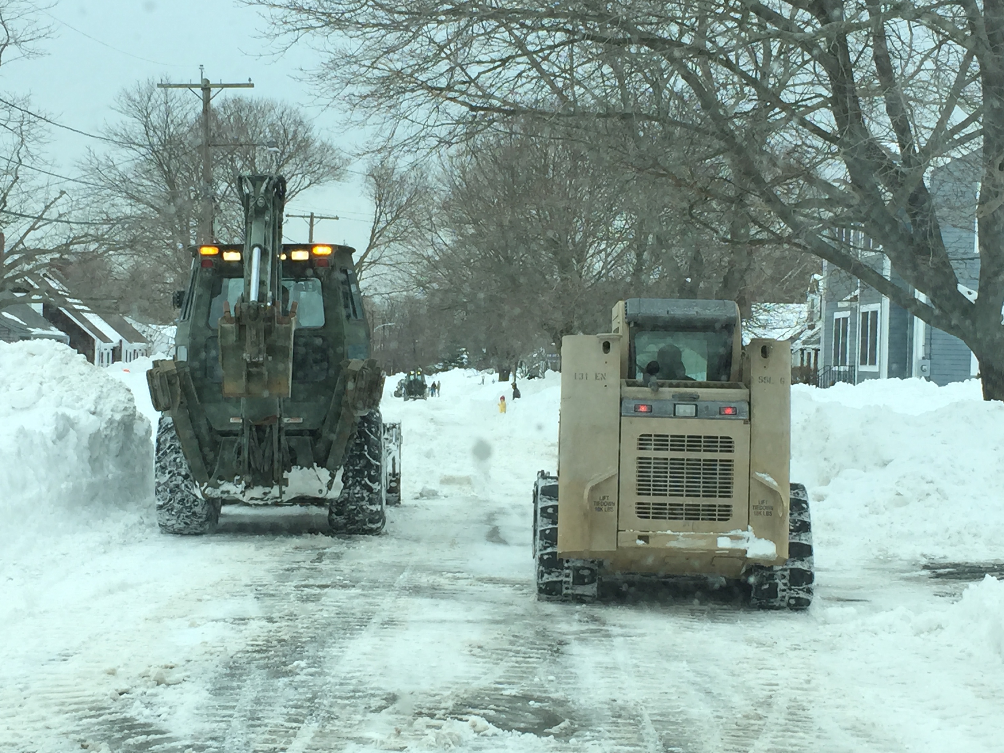 It was exciting to come home yesterday and find the National Guard taking care of our street. Smith Road had become so narrow that I had to do a 3 point turn to get in and out of our driveway. Likewise, we had suffered a couple of stand-offs when faced with oncoming cars on our little street. Really nice guys out of Vermont. One commented on the fact that despite the crazy amounts of snow, Rockport looked like a nice little town. We told him to come back during the summer for sure.