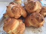 Sista Felicia’s Homemade “St. Joseph Zeppole” filled with both traditional vanilla custard, and sweetened ricotta topped with cherries and confectioners sugar!
