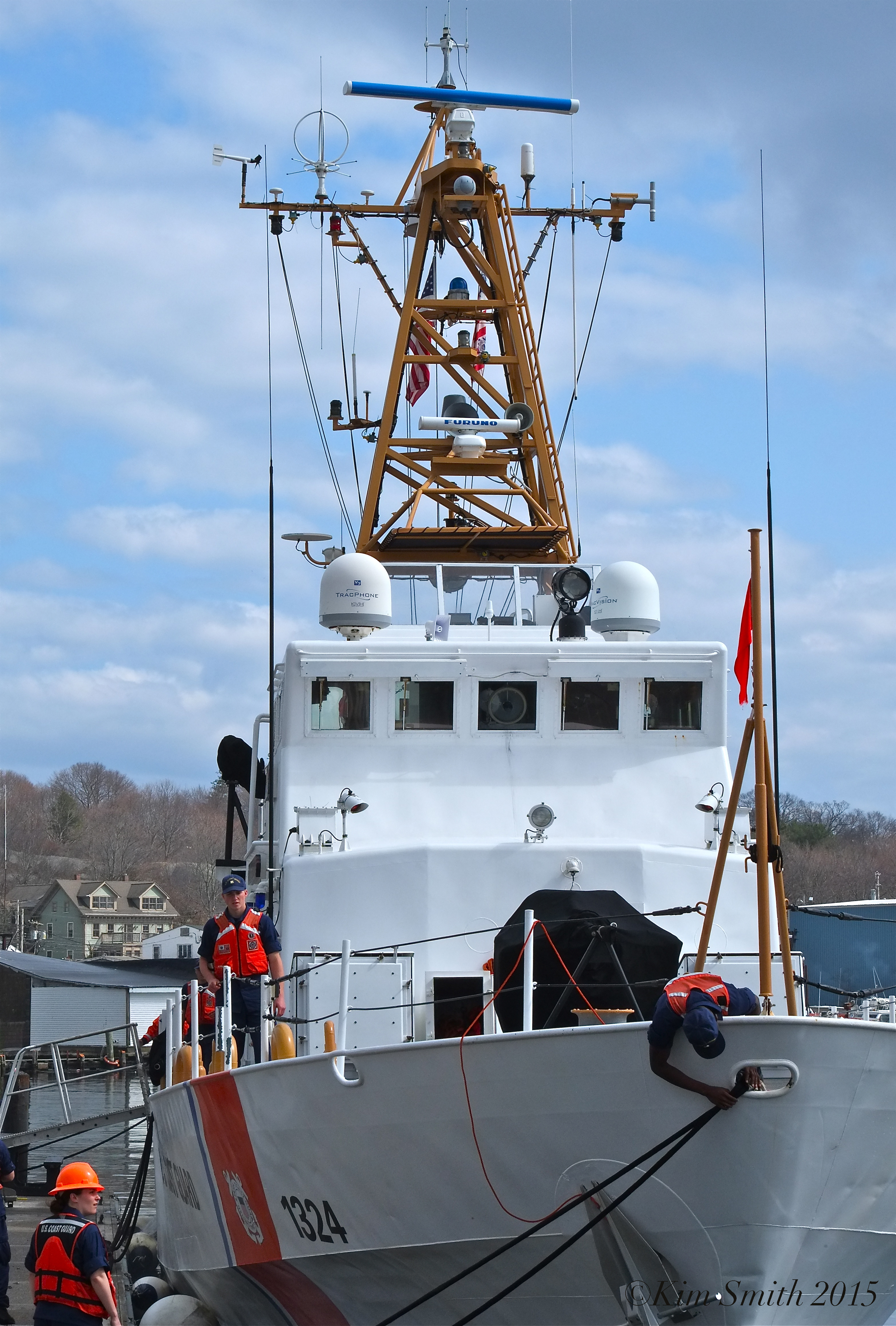 Under the command of Captain LT Nolan Cuevas, Gloucester’s USCG new Cutter, the Key Largo, powered through the harbor before docking at the Jodrey State Fish Pier.