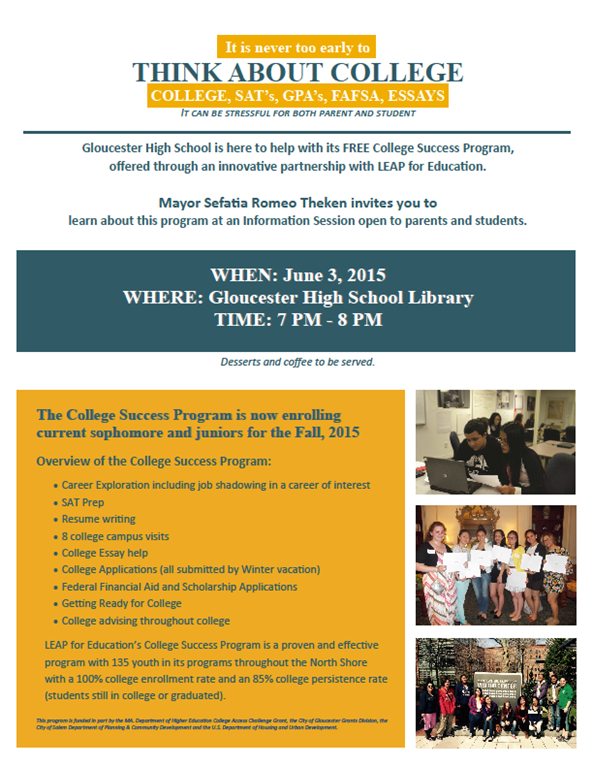 Gloucester High School is offering a FREE College Success Program, through an innovative partnership with LEAP for Education.