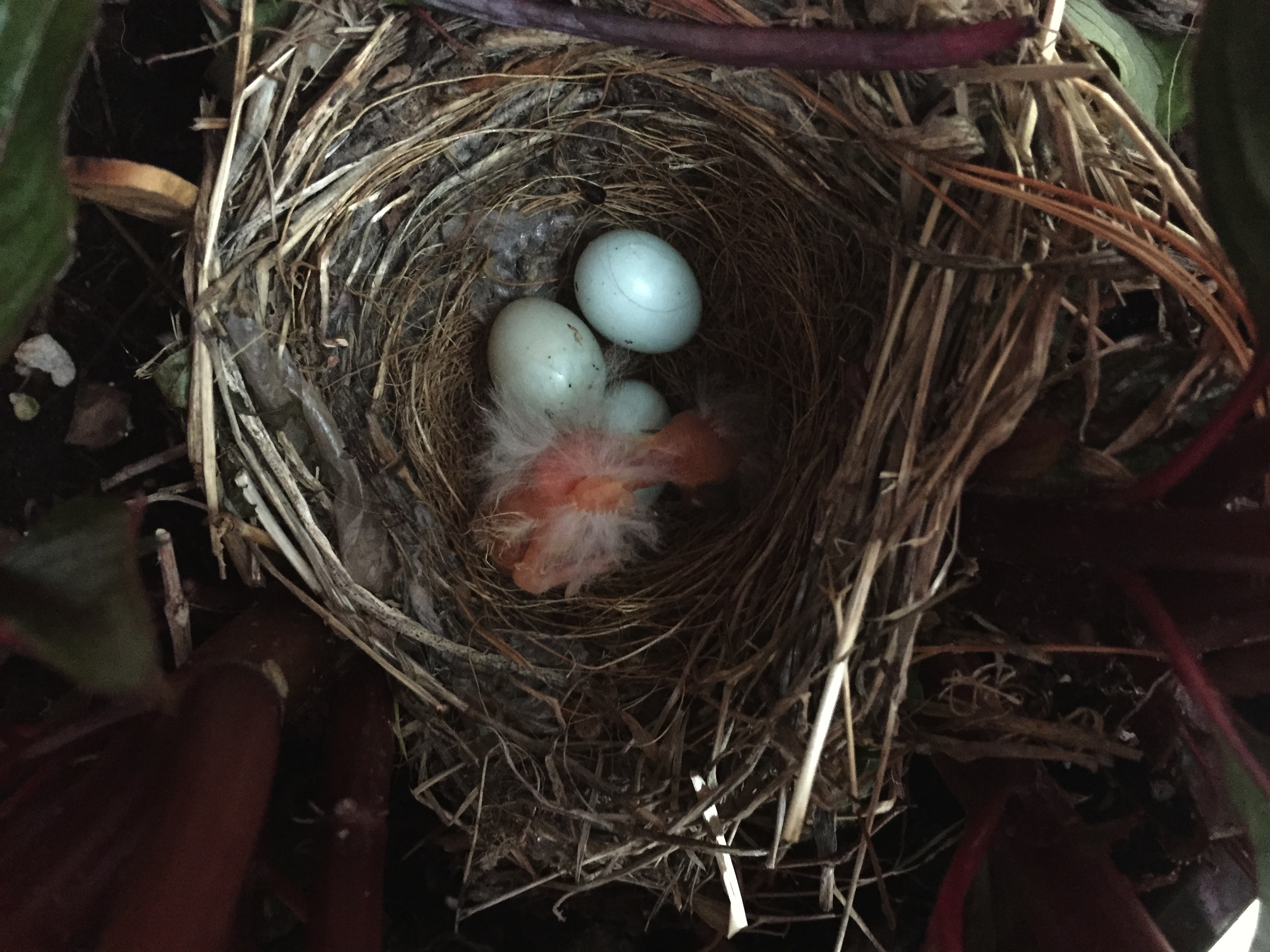 Upon researching further, I realized that this practice will often lead to the demise of the resident eggs. The cowbird is much larger and demands more food once being hatched. Often times the smaller birds don’t stand a chance. I thought about removing the interloper egg, but that didn’t seem right. I also read that sometimes all of the birds may hatch and grow successfully…so I didn’t want to do anything that would jeopardize that possibility.
