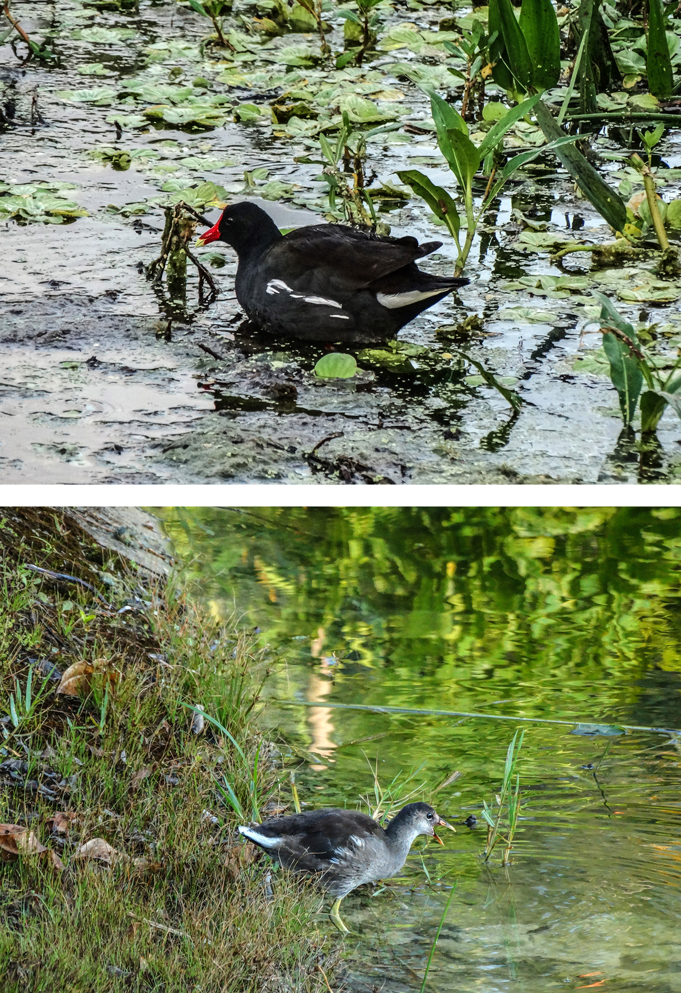 Although I have encountered gallinules in MA, I haven’t encountered them on Cape Ann. This adult and chick were photographed in Florida, where they are plentiful but shy.