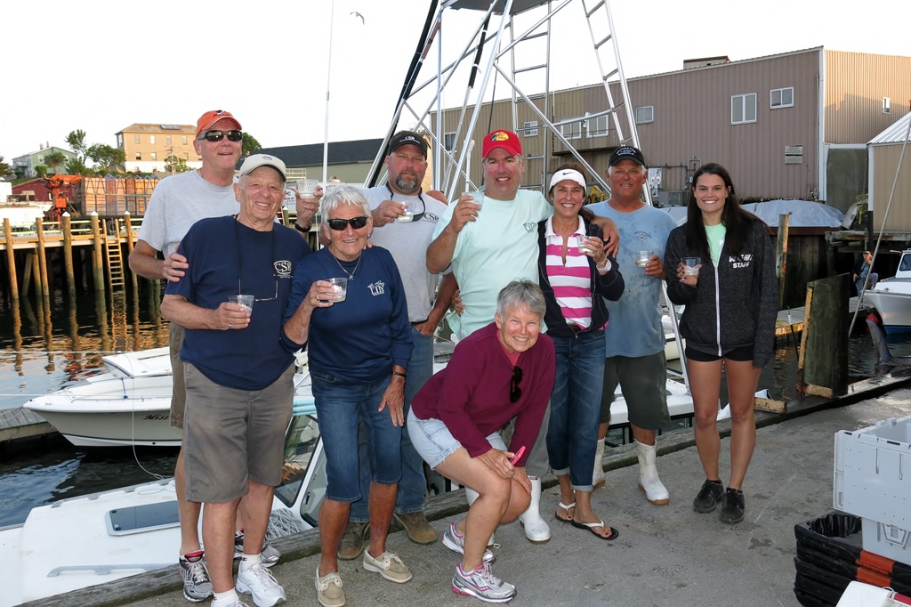Celebrating with family and friends with a champagne toast to Captain Muniz.