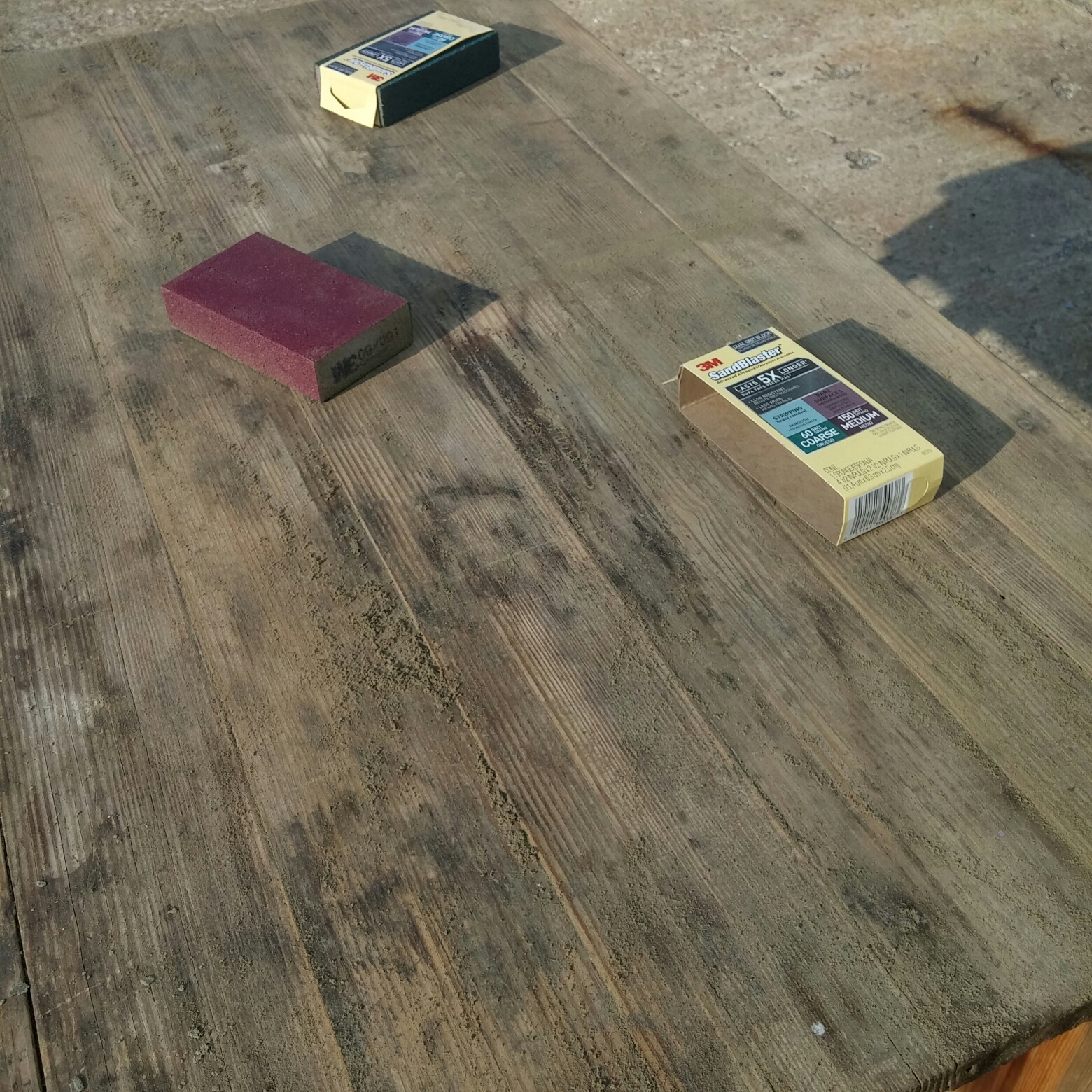 Knowing the complete monkey I am with any DIY project I didn’t want to commit a lot of dough to the project and I didn’t want to spend $75 doing a complete restore of an old $15 yard sale table. The whole idea was to just try to preserve it for maybe a couple more years with it being left outdoors for three seasons.