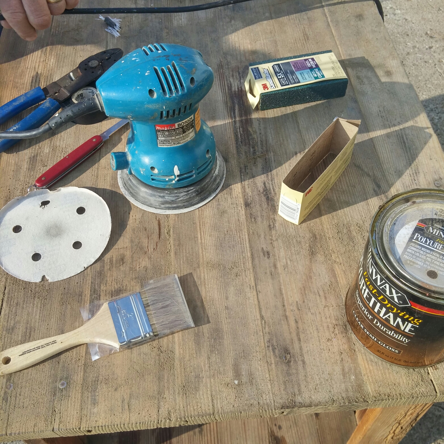 Captain Pete Mondello stopped down with a sander. Even though the sanding blocks are super effective I’m gonna give the electric sander a go.
